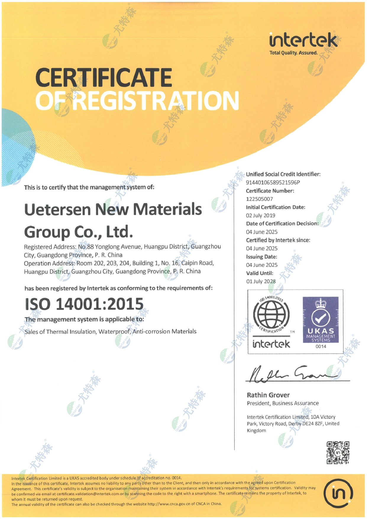 尤特森新材料集團有限公司是一家集保溫材料及復合材料的研發、生產和銷售為一體的綜合型企業,旗下擁有UETERSEN尤特森和UK尤科新材等多個品牌。